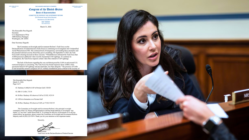 On March 31st, 2026, Congresswoman Anna Paulina Luna, Chairwoman of the Task Force on the Declassification of Federal Secrets, sent a formal letter to Secretary of War Pete Hegseth demanding the delivery of 46 specific classified UAP video files no later than April 14th, 2026. According to the letter, the Task Force has found AARO — the All-Domain Anomaly Resolution Office, the Pentagon’s congressionally mandated UAP investigation body — less than adequate in its responses when questioned about UAP sightings and provided data.